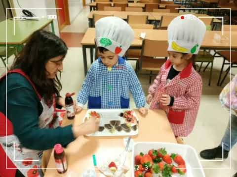 Comenzamos cun novo proxecto. Esta vez, xunto cos nenos e nenas de 4 anos B, imos levar a cabo un proxecto de traballo que nos levará parte deste trimestre e todo o terceiro. Partimos do conto "Os 4 porquiños e o lobo". Xa coñecemos un pouquiño a historia. Faremos unha gran variedade de obradoiros relacionados coa alimentación saudable (roda dos alimentos) e coas casas. Este é o primeiro, adicado enteiramente ás froitas, un dos alimentos que máis costa aos nenos-as comer, polo que temos que buscar estratexias para que aprecien o valor da froita e para que a coman de forma natural, ás veces un pouco disfrazada, pois moitos, simplemente, nin queren probala. Neste caso empezamos coas fresas e os plátanos, acompañados de sirope de fresa, de chocolate e de nata. Cada neno-a cortou a súa fresa e o seu anaco de plátano nun prato, con un coiteliño de madeira. Logo, colocaron os anacos de xeito libre e fixeron formas. Por último, adornamos co sirope preferido ou nata. Foi sorprendente a destreza de moitos á hora de cortar e, como non, ver a algúns que normalmente non querían nin ver a froita, comer todo con moito gusto.